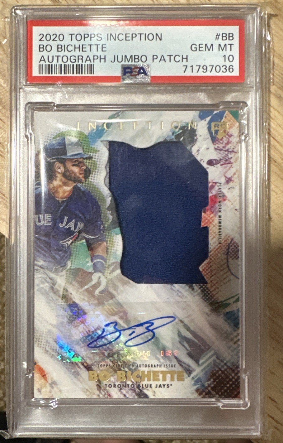 2020 Topps Inception Bo Bichette Auto Jumbo Patch /90 PSA 10 Signed by Bo Bichette
