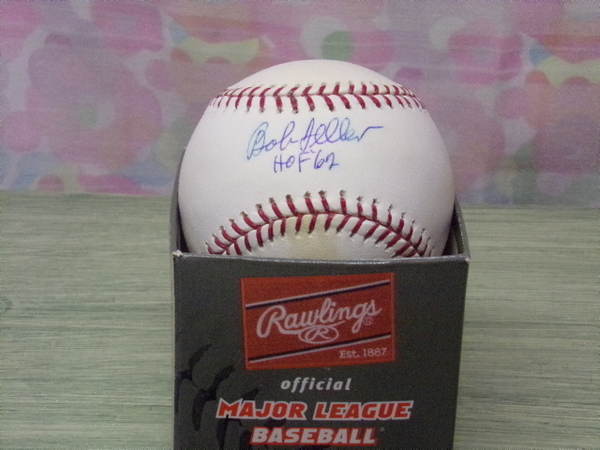 BOB FELLER SIGNED BASEBALL HOF 62 CLEVELAND INDIANS RIP!