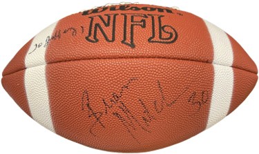 Brian Mitchell is a former American football running back and return specialist in the National Football League. He was originally drafted by the Washington Redskins in the fifth round (130th overall) of the 1990 NFL Draft. He played college football at Louisiana (then known as University of Southwestern Louisiana) where he was a quarterback. Mitchell is considered one of the greatest return specialists in NFL history. Mitchell also played for the Philadelphia Eagles and the New York Giants. He is currently second on the NFL's all-time list in all-purpose yardage with 23,330 yards, behind Jerry Rice.Brian Mitchell has Signed this Wilson NFL Rep Composite Football #30 To: Jeffery. The ball displays well, does not hold full air, sold as is. Certificate of Authenticity from Athlon Sports Collectibles.