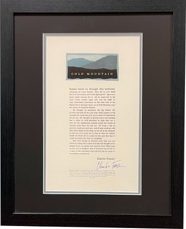 Charles Frazier Autographed Signed 1997 Cold Mountain Book 9.5x16 Broadside 16x20 Custom Framing Deluxe Lt Ed H/26- COA