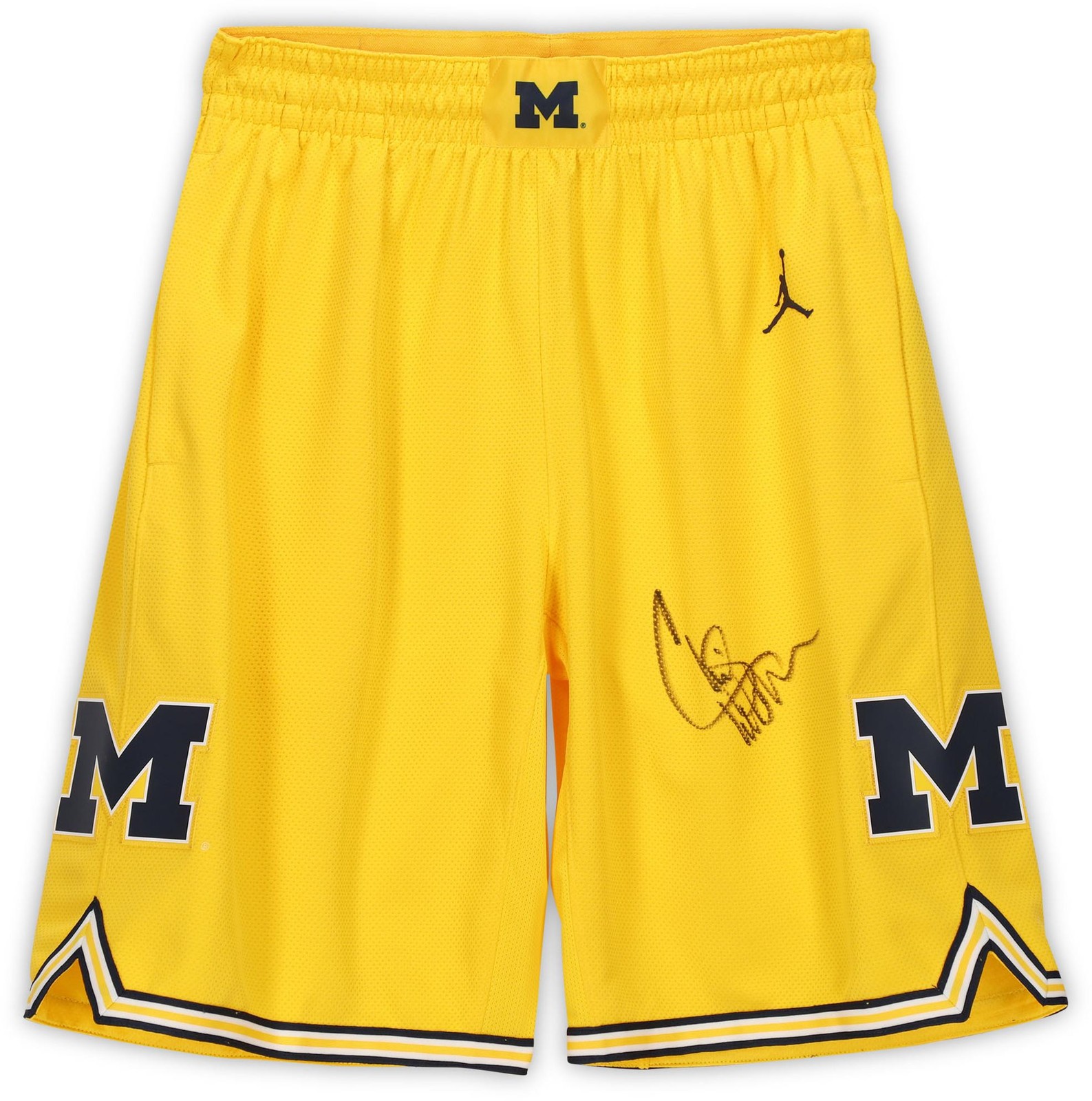 Chris Webber Michigan Wolverines Signed Jordan Yellow Rep Basketball Shorts Signed by Chris Webber Sacramento Kings