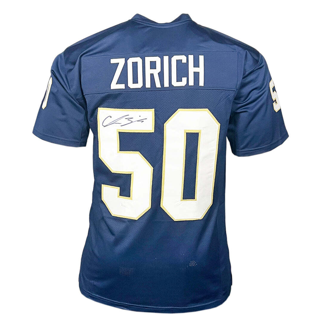 Chris Zorich Autographed Signed College Style Football Jersey Blue (JSA). Certificate of Authenticity provided by JSA. Makes a great gift for any collector or sports fan! Items ship quickly and securely.