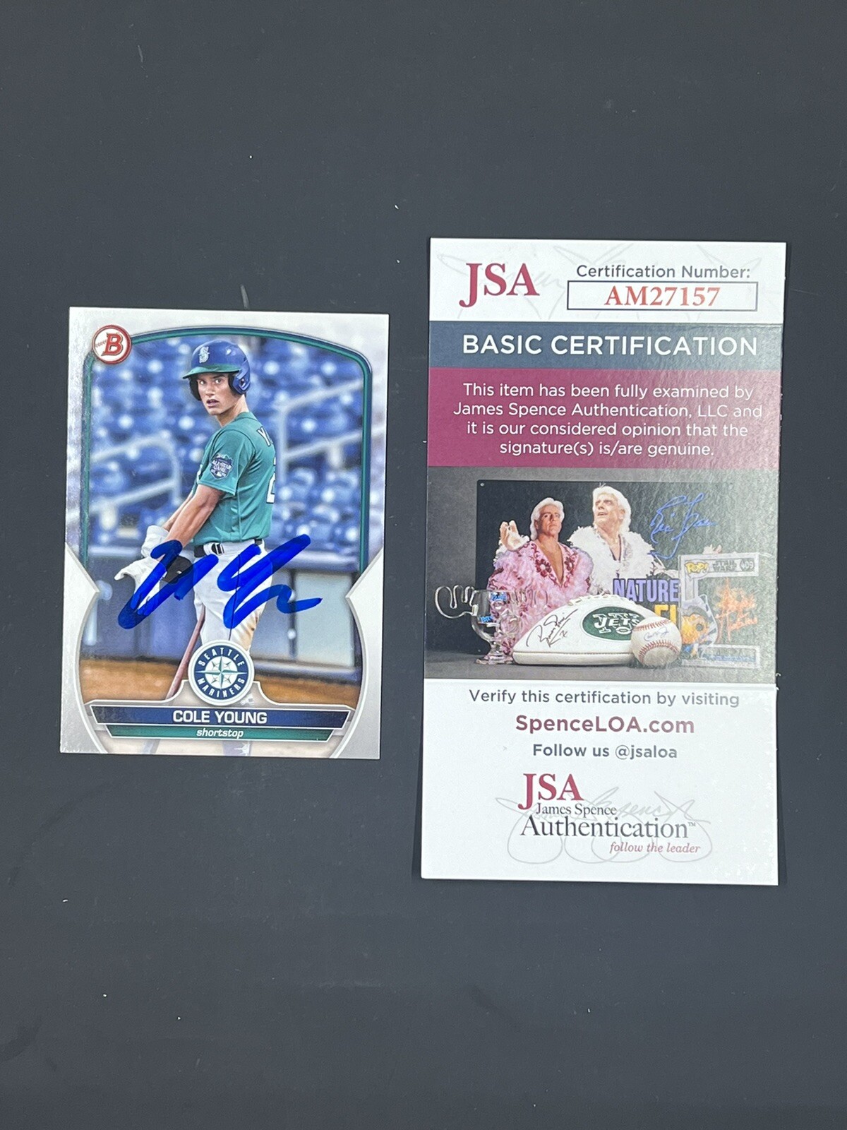 Cole Young Signed 2023 Bowman Prospects IP Auto JSA Seattle Mariners Signed by Cole Young Seattle Mariners