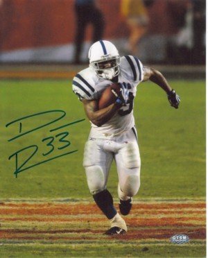 During the 2006 NFL season, Dominic Rhodes split time with rookie running back Joseph Addai, as James left for the Arizona Cardinals. Rhodes finished the year with 641 yards and five touchdowns. On February 4, 2007, in Super Bowl XLI, he scored a one-yard touchdown and rushed for over 100 yards to help the Colts claim a 29-17 victory. Dominic Rhodes has hand autographed this Indianapolis Colts 8x10 Color Photo from Super Bowl XLI. GTSM Hologram and Certificate of Authenticity from Athlon Sports.
