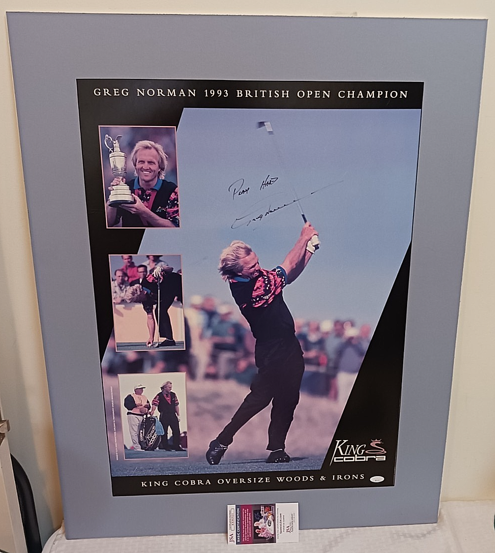 GREG NORMAN Autographed Signed Store Poster 20x30 Matted JSA KING COBRA PGA Golf