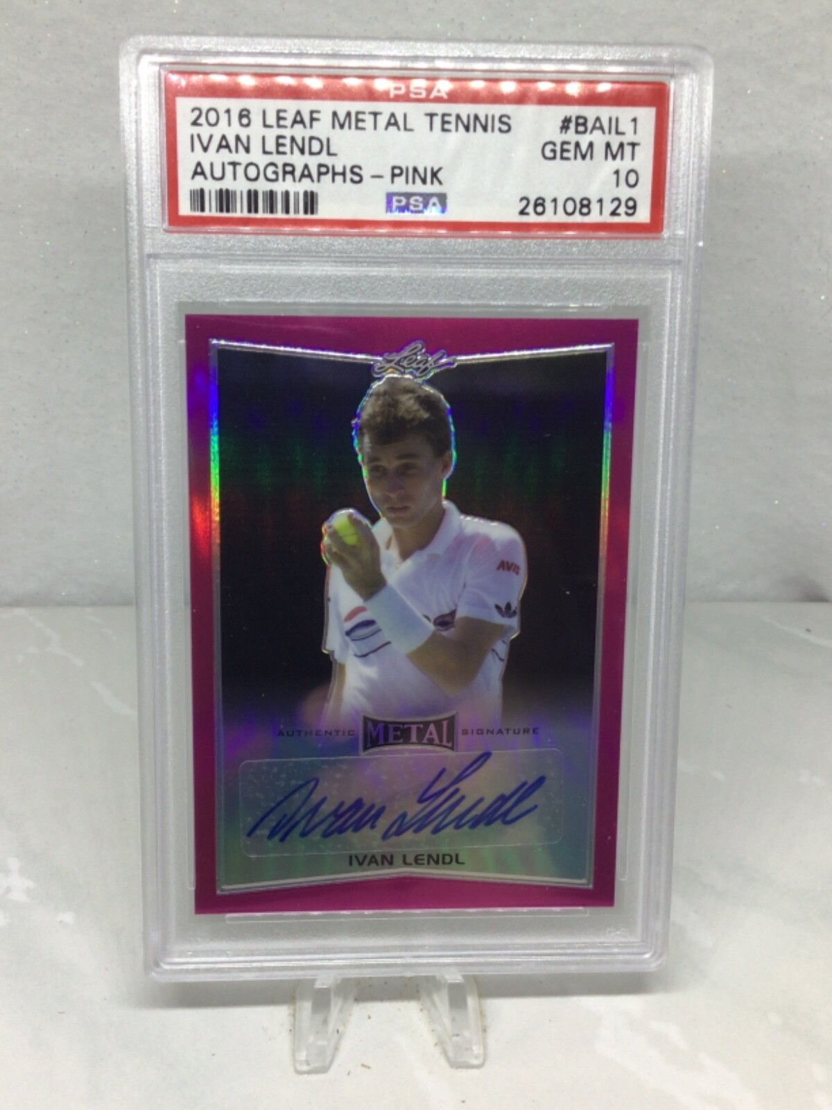 2016 Leaf Metal Auto Pink #BAIL1 8/10 Ivan Lendl PSA 10 Signed by Ivan Lendl