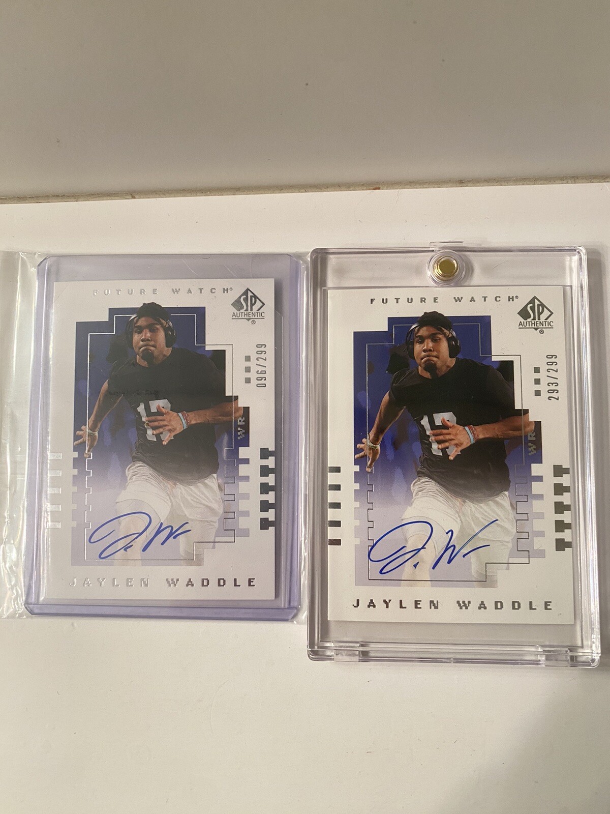 (2) SP Authentic Future Watch Rookie Auto Jaylen Waddle /299 Dolphins Signed by Jaylen Waddle