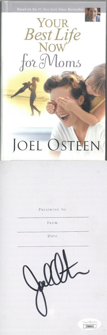 Joel Osteen is an American pastor, televangelist, and author, based in Houston, Texas. As of 2018, Osteen's televised sermons were seen by approximately 10 million viewers in the US and several million more in over 100 countries weekly. Osteen has also written several best-selling books. Joel Osteen has hand signed this 2007 Your Best Life Now for Moms Hardcover Book. He signed the inside dedication page as shown. JSA Authentication Sticker #JJ96642 and JSA Certificate of Authenticity. Handling/condition as shown
