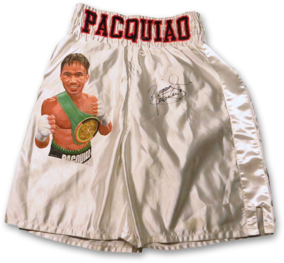 Manny Pacquiao Signed Autographed Custom Painted Boxing Trunks Silver JSA F06874 Signed by Manny Pacquiao