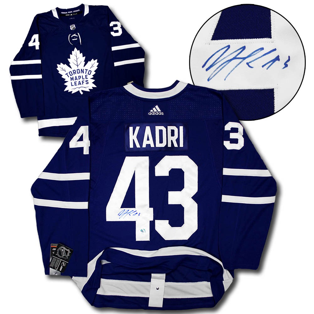 Nazem Kadri Autographed Toronto Maple Leafs adidas Jersey This hockey jersey is hand-signed by Nazem Kadri. Toronto Maple Leafs adidas Adizero Jersey Authentic licensed jersey with fight strap and original factory tags. All numbers and letters are professionally sewn on the jersey. Includes AJ Sports certificate of authenticity and hologram. AJ Sports guarantees this autographed memorabilia to be authentic. For your assurance and protection, we promise a money back guarantee if the authenticity of any item we sell is considered doubtful. Guarantee valid unless the hologram, item, or documentation have been altered.