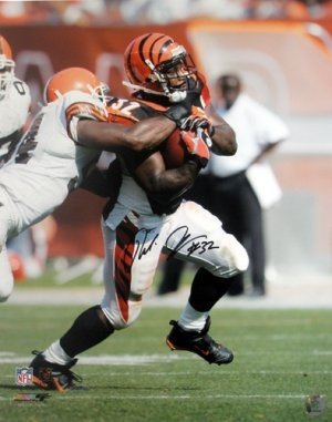 Rudi Johnson was drafted by the Cincinnati Bengals in the fourth round of the 2001 NFL Draft. Johnson was selected to the Pro Bowl with the Bengals in 2004 leading the AFC team in rushing. His bruising style of nose to the grindstone running Johnson made quite a reputation, and led to nicknames such as "The Auburn Rambler". Rudi Johnson has hand autographed this Cincinnati Bengals Color 16x20 Photo. Certificate of Authenticity from Athlon Sports.