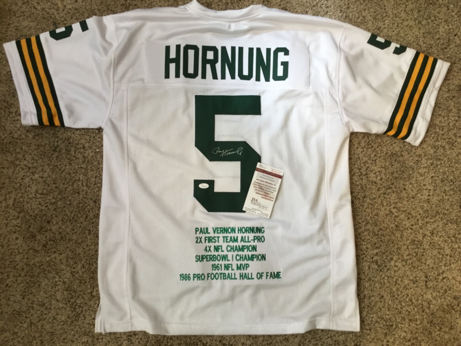 (SSG) PAUL HORNUNG Signed "Green Bay Packers" Rare Stat Jersey with a JSA (COA