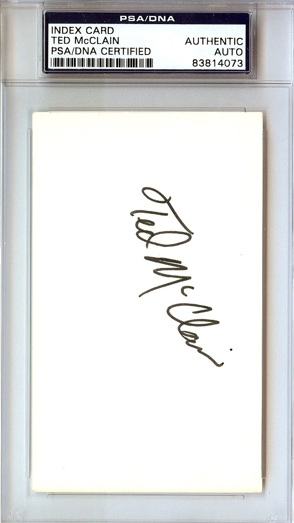 Ted Mcclain Autographed 3X5 Index Card Carolina Cougars PSA/DNA. Certificate of Authenticity provided by PSA/DNA. Makes a great gift for any collector or sports fan! Items ship quickly and securely.