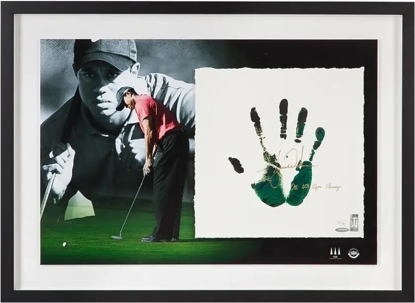 Tiger Woods Autographed Tegata Lithograph Inscribed Green & Black 1/50 UDA Signed by Tiger Woods