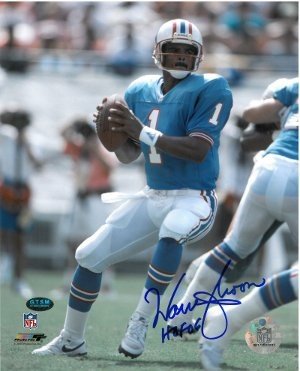 Warren Moon hand autographed Houston Oilers 8x10 Photo. Warren Moon Hologram and Certificate of Authenticity from Athlon Sports.